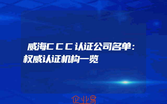 - 威海CCC认证公司名单:权威认证机构一览