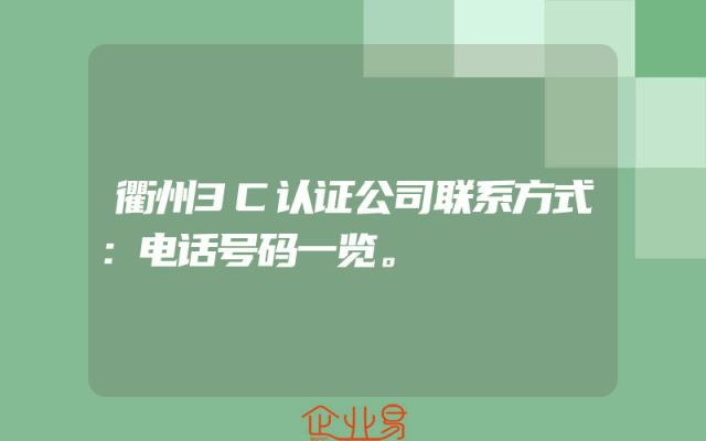 - 衢州3C认证公司联系方式:电话号码一览。