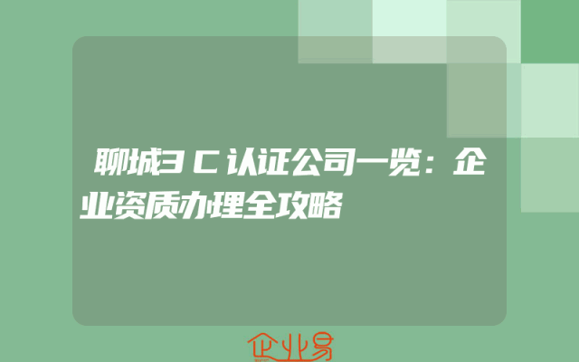 - 聊城3C认证公司一览:企业资质办理全攻略