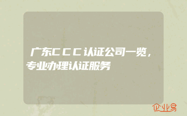 - 广东CCC认证公司一览,专业办理认证服务