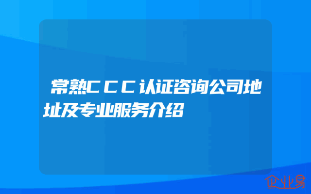 - 常熟CCC认证咨询公司地址及专业服务介绍