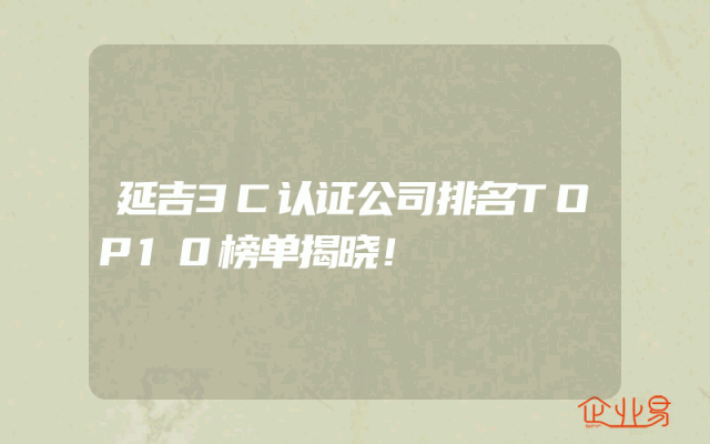 - 延吉3C认证公司排名TOP10榜单揭晓!
