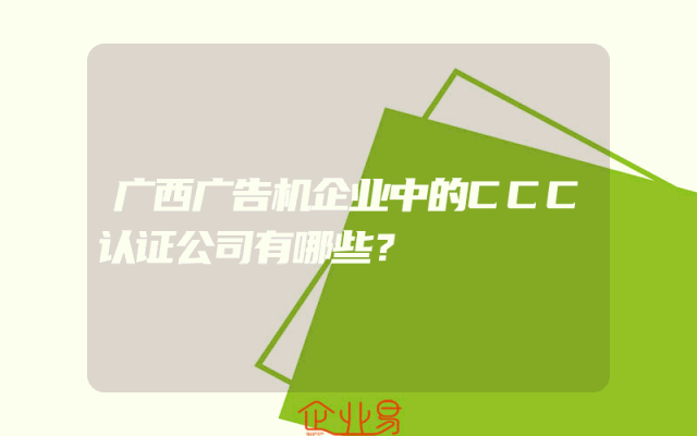 - 广西广告机企业中的CCC认证公司探讨一、CCC认证概述在中国,CCC认证(强制性产品认证制度)是许多企业为保障产品安全和消费者利益必须遵循的认证制度。广西作为我国的重要经济区域,其中的广告机企业在CCC认证方面也走在了前列。在广西的广告机企