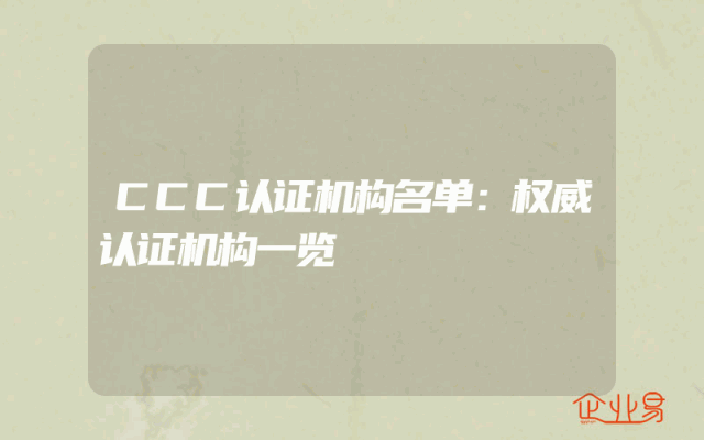 - CCC认证机构名单解析:权威认证机构一览一、CCC认证概述CCC认证,即中国强制认证,是中华人民共和国针对涉及安全、环保等方面要求的产品实施的强制性认证制度。企业在产品投放市场之前必须通过CCC认证,确保产品的质量和安全。而在这一过
