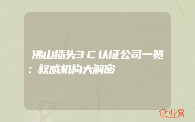 - 佛山插头3C认证公司一览:权威机构大解密一、佛山插头行业概述佛山作为中国电器产品的制造重镇,拥有众多的电子制造和配件生产厂商,插头作为重要的电器配件之一,其质量直接关系到消费者的安全和产品的效能。因此,在佛山地区,插头生产企业众多,