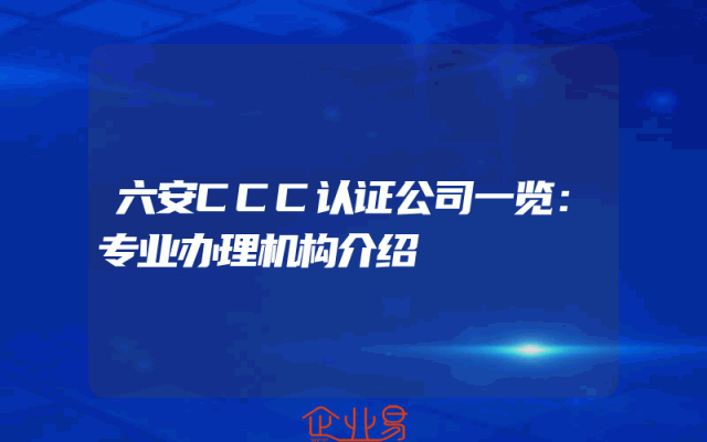 - 六安CCC认证公司一览:专业办理机构介绍一、六安CCC认证公司概述随着市场竞争的日益激烈,企业对于各类认证的需求也日益增长。在安徽省六安市,有多家专业的CCC认证公司致力于为企业提供全方位的资质办理服务。这些公司熟知认证流程,能够为企业提供