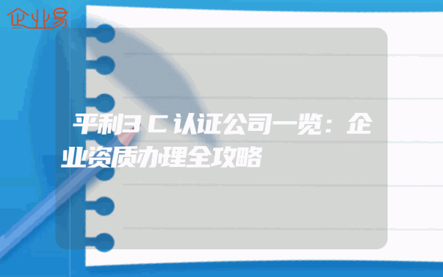 - 平利3C认证公司一览:企业资质办理全攻略了解3C认证与资质办理的重要性在当今市场竞争激烈的商业环境中,企业资质成为了参与市场活动的必备条件之一。作为专业的平利3C认证公司,了解并顺利办理企业资质,对