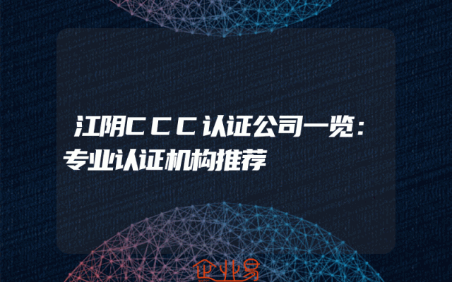 - 江阴CCC认证公司一览:专业认证机构推荐