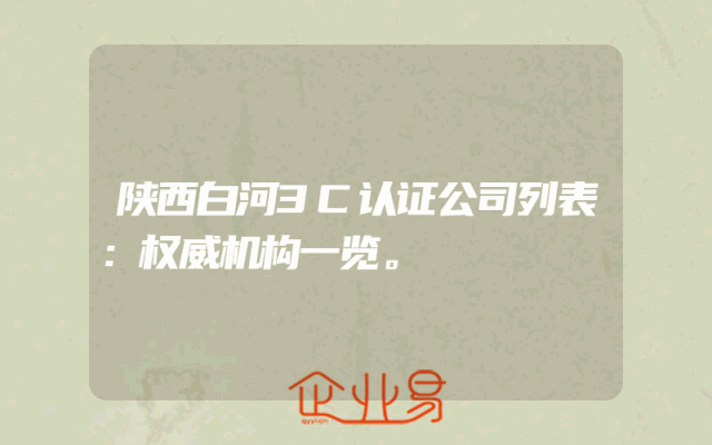 - 陕西白河3C认证公司列表:权威机构一览一、引言随着市场经济的发展,产品质量与安全日益受到社会各界的关注。在中国,3C认证作为一种产品质量安全认证,对于规范市场、保障消费者权益起到了重要作用。陕西省白河县作为经济发展的重要区域,拥有多家权威的