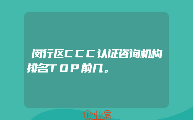 - 闵行区CCC认证咨询机构排名TOP前几。