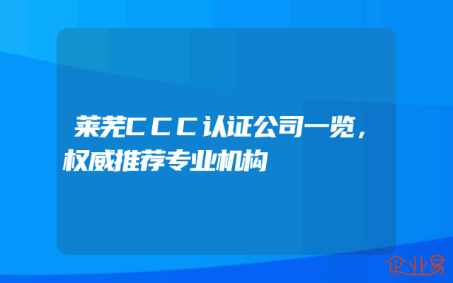 - 莱芜CCC认证公司一览,权威推荐专业机构