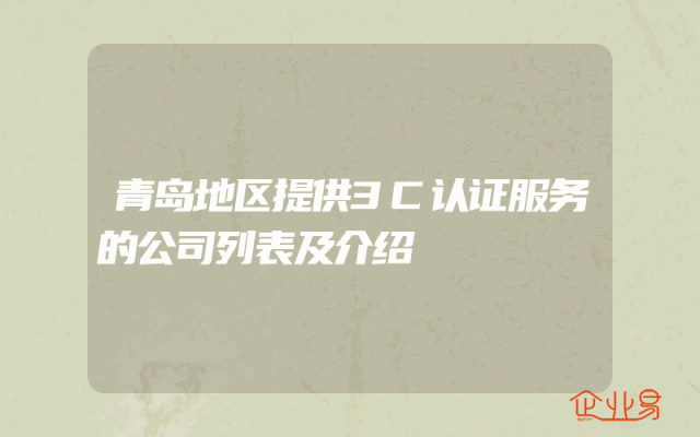 - 青岛地区提供3C认证服务的公司列表及介绍