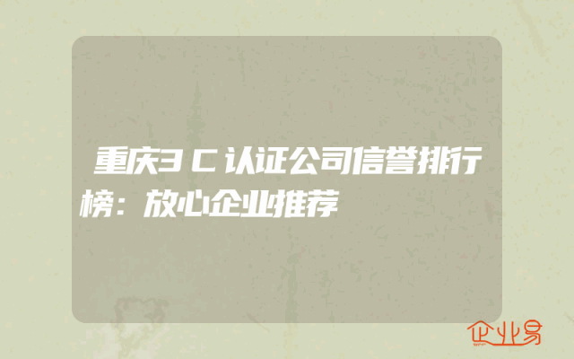 - 重庆3C认证公司信誉排行榜:放心企业推荐