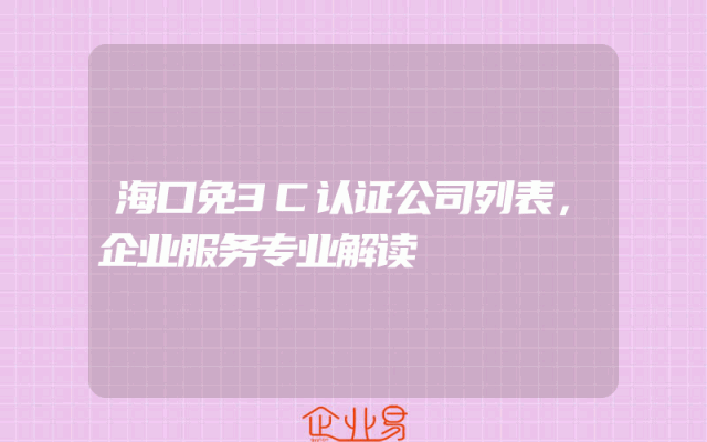 - 海口免3C认证公司列表,企业服务专业解读