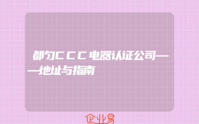 - 都匀CCC电器认证公司——地址与指南