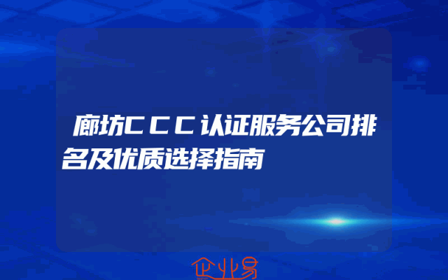 - 廊坊CCC认证服务公司排名及优质选择指南