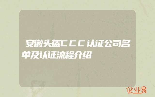 - 安徽头盔CCC认证公司名单及认证流程介绍