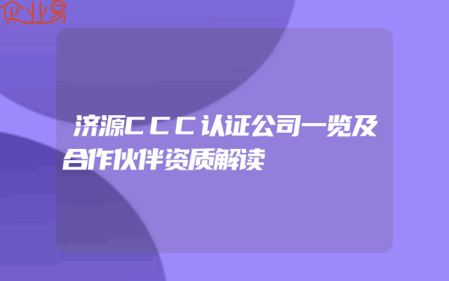 - 济源CCC认证公司一览及合作伙伴资质解读