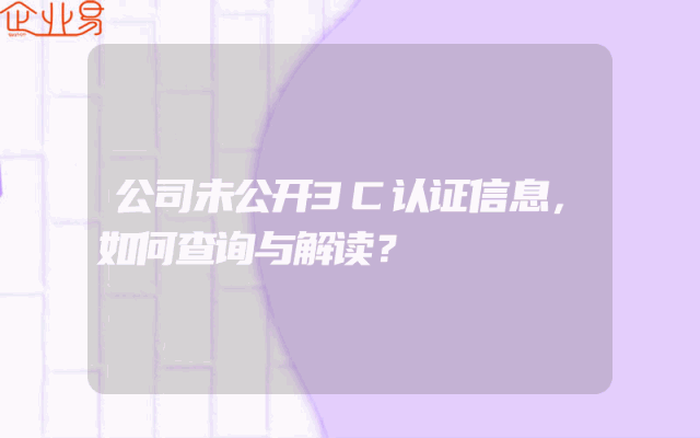 - 公司未公开3C认证信息,如何查询与解读?