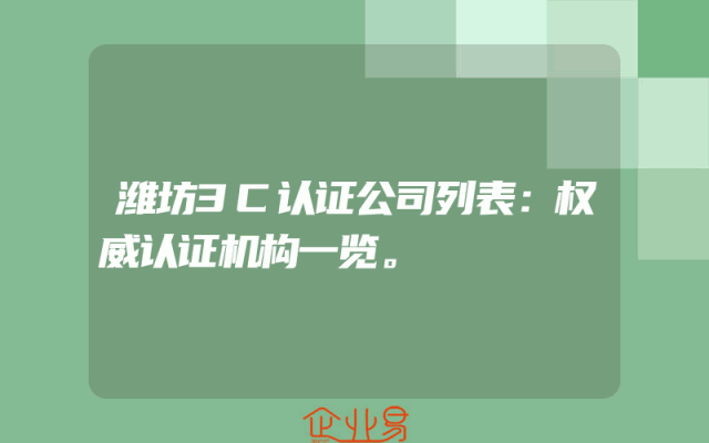 - 潍坊3C认证公司列表:权威认证机构一览。