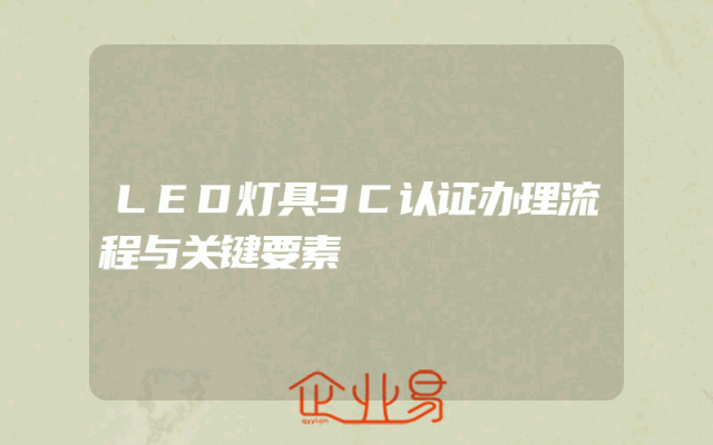 - LED灯具3C认证办理流程与关键要素详解一、LED灯具市场现状及重要性随着LED技术的不断发展和市场需求的日益增长,LED灯具已经成为现代照明行业的主流产品。为确保消费者的权益和安全,国家对LED灯具实施了严格的认证制度,其中最为普遍的是国