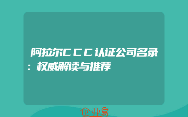 - 阿拉尔CCC认证公司名录:权威解读与推荐