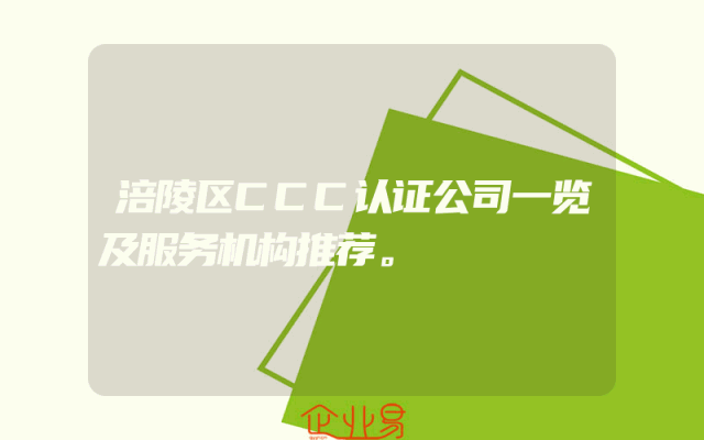 - 涪陵区CCC认证公司一览及服务机构推荐。