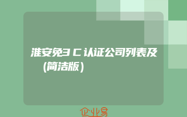 - 淮安免3C认证公司列表及解析(简洁版)一、淮安免3C认证公司概览在中国市场,3C认证是电子产品进入市场的必要门槛。淮安市作为江苏省的重要城市,拥有众多企业,其中部分企业在某些领域达到了免3C认证的标准。本文将详细解析淮安免3C认证的公司列表