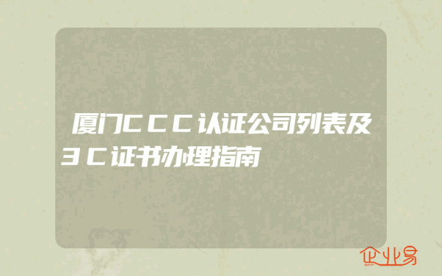 - 厦门CCC认证公司列表及3C证书办理指南