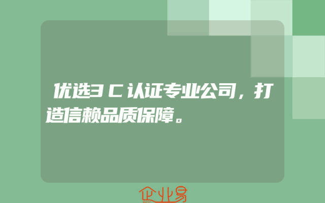- 优选专业3C认证公司,打造信赖品质保障一、了解3C认证的重要性在中国市场,产品的合规性对于企业的生存和发展至关重要。其中,3C认证作为强制性产品认证制度,对于保障消费者的权益和产品的安全质量起到了重要作用。因此,选择一家专业的3C认证公司,