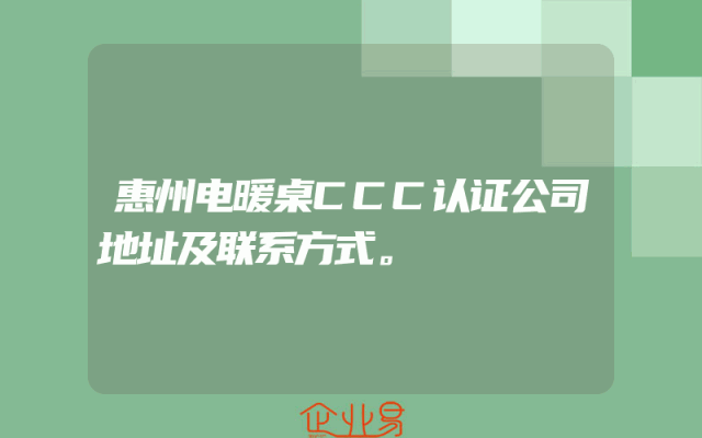 - 惠州电暖桌CCC认证公司地址及联系方式。