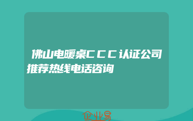 - 佛山电暖桌CCC认证公司推荐热线电话咨询——专业角度解读企业资质办理政策一、引言近年来,随着生活水平的提高和取暖设备的升级,电暖桌成为家庭和办公室的必备产品之一。作为生产企业,佛山地区的各大企业都在积极寻求合规发展之路。其中,CCC认证作为