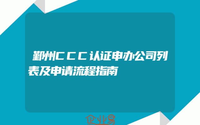 - 鄞州CCC认证申办公司列表及申请流程指南