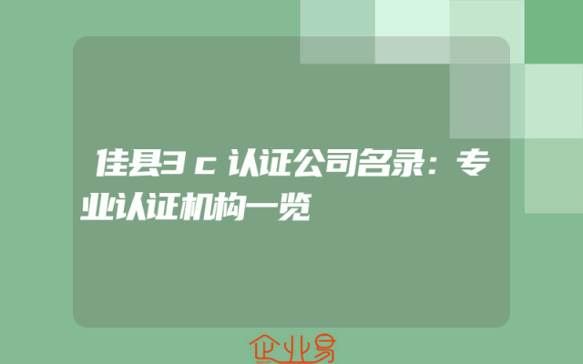 - 佳县3c认证公司名录:专业认证机构一览