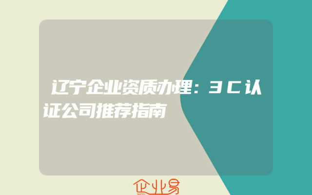 - 辽宁企业资质办理:3C认证公司推荐指南