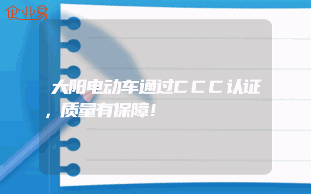 - 大阳电动车通过CCC认证,质量有保障!