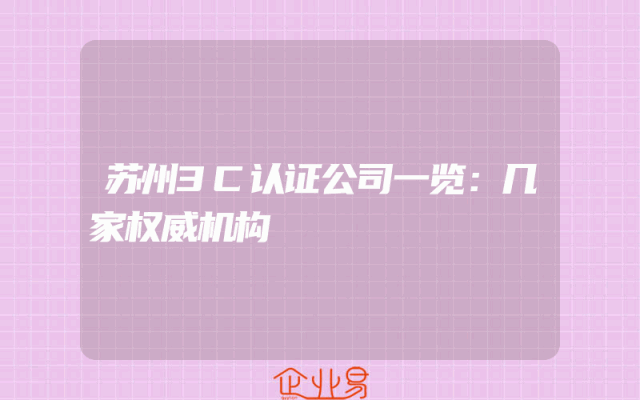 - 苏州3C认证公司一览:几家权威机构解析一、苏州3C认证概述苏州作为中国经济发达的城市之一,拥有众多的制造业和服务业企业。随着市场竞争的加剧,企业对产品质量和安全性的要求也越来越高。因此,许多企业开始寻求通过3C认证来提升产品竞争力。所谓3C