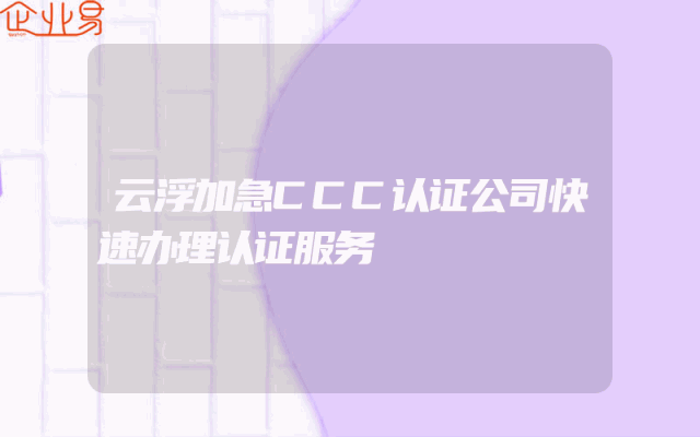 - 云浮加急CCC认证公司快速办理认证服务解析一、CCC认证的重要性在当今市场竞争日益激烈的商业环境中,产品质量成为了企业生存和发展的关键因素之一。对于出口企业来说,产品能否顺利进入国际市场,取得相关认证显得尤为重要。其中,CCC认证作为我国强