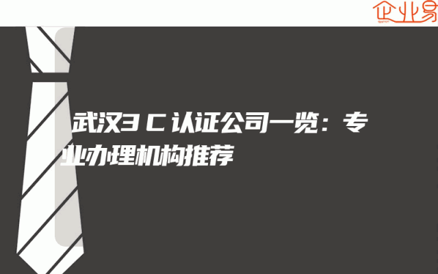 - 武汉3C认证公司一览:专业办理机构推荐一、武汉地区3C认证公司概述在中国市场,3C认证作为一种强制性产品认证,对于企业和消费者而言具有极高的重要性。武汉作为华中地区的经济中心,拥有众多专业的3C认证公司。这些公司致力于为企业提供全方位的产品