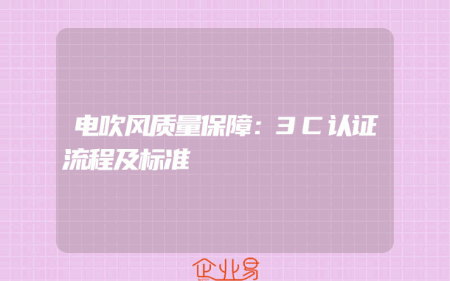- 电吹风质量保障:3C认证流程及标准解析一、电吹风3C认证的重要性随着家电市场的日益繁荣与消费者安全意识的提升,电器产品的安全性受到了广泛关注。电吹风作为日常生活中的常用电器,其质量保障尤为关键。而3C认证作为中国强制性产品认证制度,是保障电