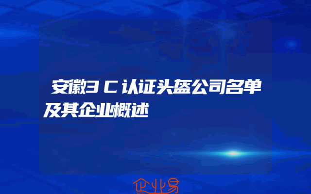 - 安徽3C认证头盔公司名单及其企业概述