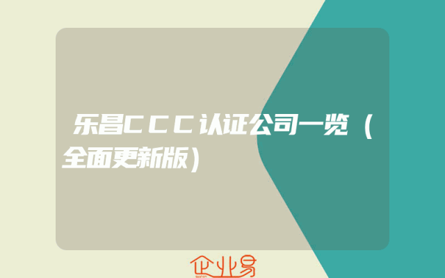 - 乐昌CCC认证公司一览(全面更新版)