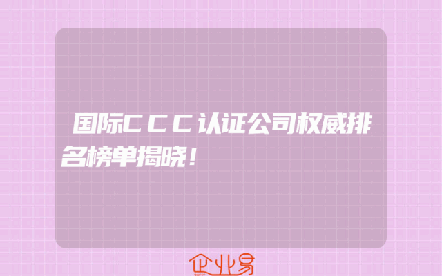 - 国际CCC认证公司权威排名榜单揭晓!