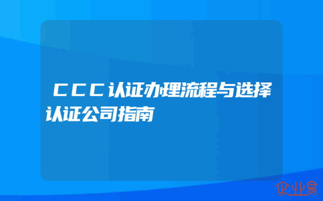- CCC认证办理流程与选择认证公司指南
