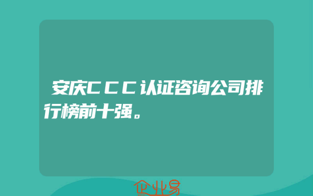 - 安庆CCC认证咨询公司排行榜前十强。
