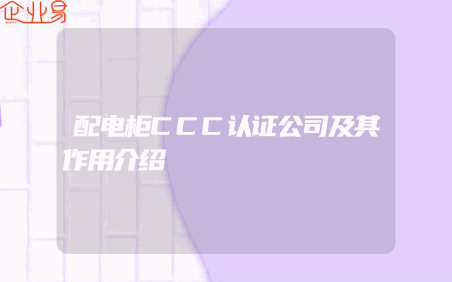 - 配电柜CCC认证公司及其作用介绍