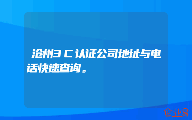 - 沧州3C认证公司地址与电话快速查询:详尽指南一、引言在中国,企业为了产品的合规上市,经常需要进行一系列的认证工作。其中,3C认证是中国政府为保护消费者人身安全和国家安全而实施的一种产品合格评定制度。对于位于沧州的企业来说,了解当地的3C认证