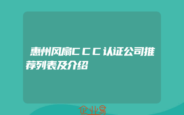 - 惠州风扇CCC认证公司推荐列表及介绍