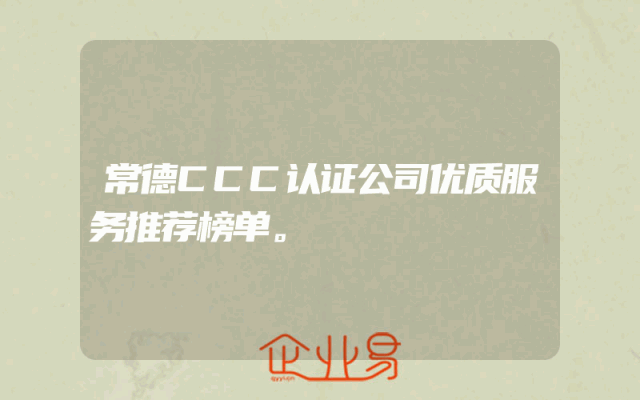- 常德CCC认证公司优质服务推荐榜单一、引言在当今社会,企业的合规经营至关重要,特别是在涉及到国家安全和消费者权益的领域,企业资质的重要性日益凸显。CCC认证作为我国针对部分产品的强制性认证标准,对企业的产品质量和安全性提出了明确要求