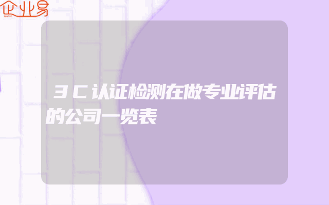 - 关于办理企业资质中的3C认证检测与专业评估公司一览表一、开篇介绍在中国企业服务行业中,随着市场竞争的日益激烈,各类企业资质办理成为企业发展的重要环节。其中,3C认证检测作为企业资质的重要部分,受到了广泛关注。本文将介绍一些专业提供办